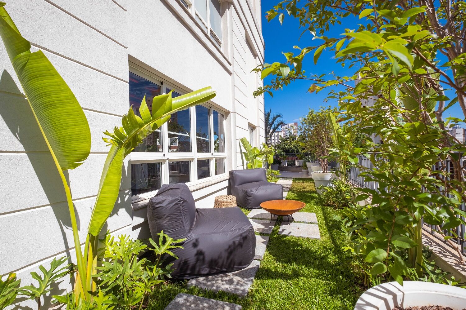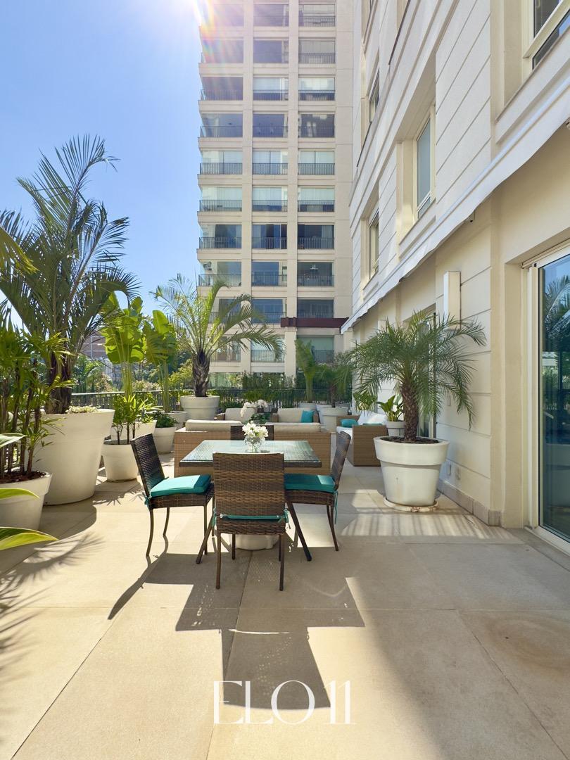 Unidade exclusiva com uma área de lazer privativa com atrativos únicos: piscina com raia de 17 metros e spa, e terraço descoberto que oferece a sensação de uma casa suspensa.